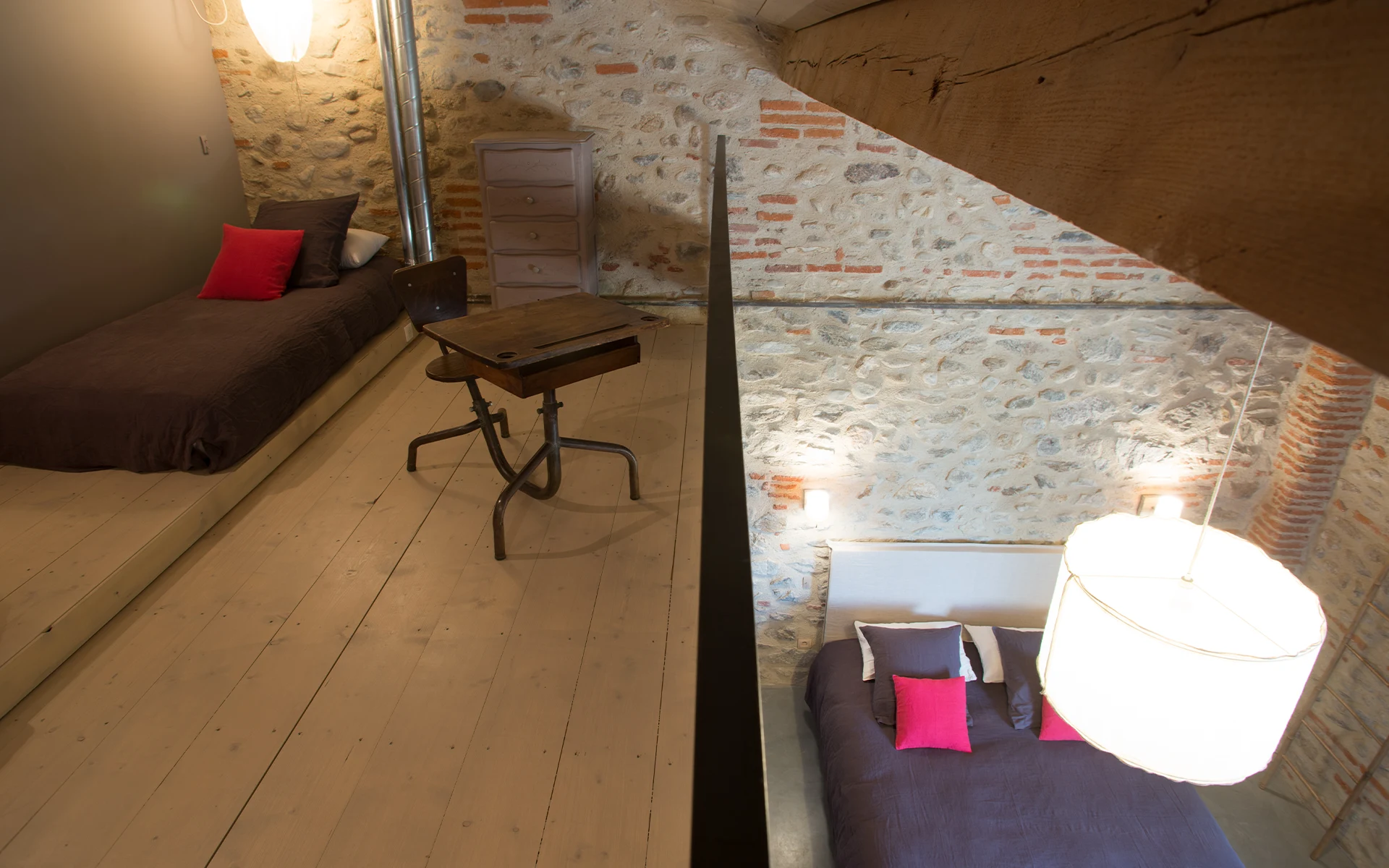 - 2 chambres avec mezzanine et 2 couchages supplémentaires.